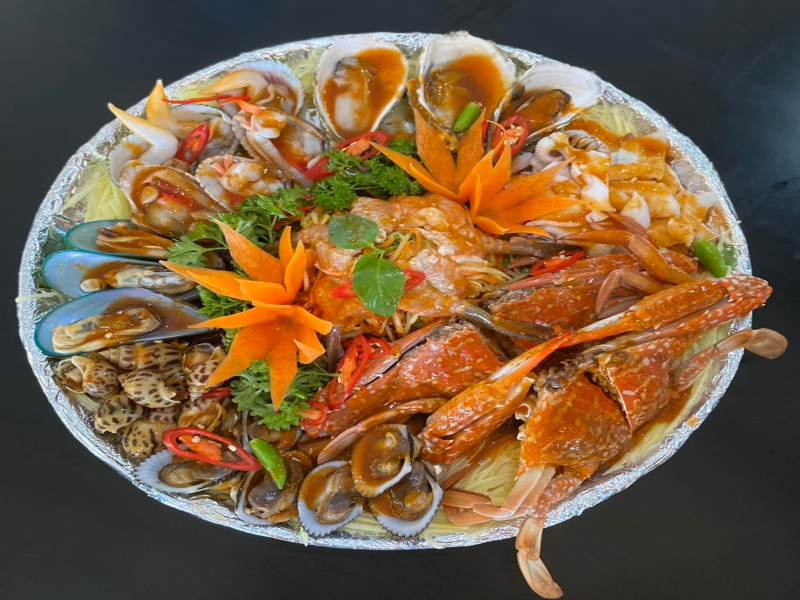 - Hải sản sống 100% chế biến ngay tại quày